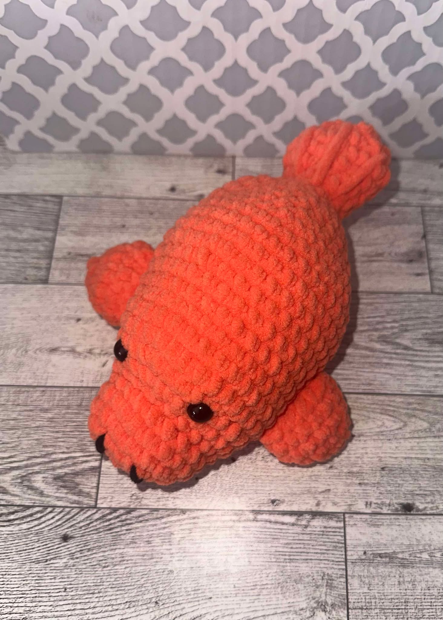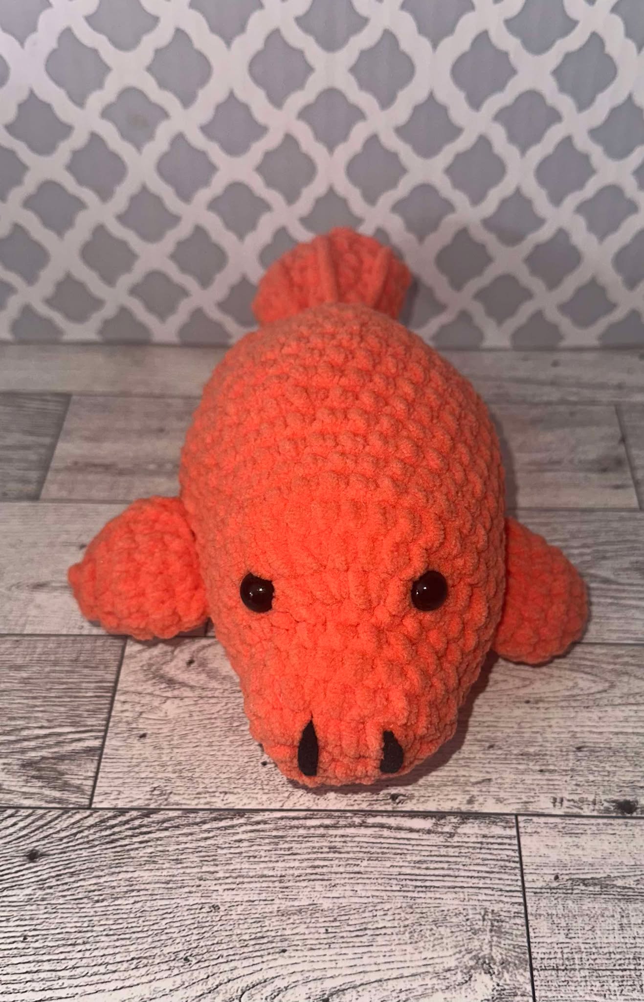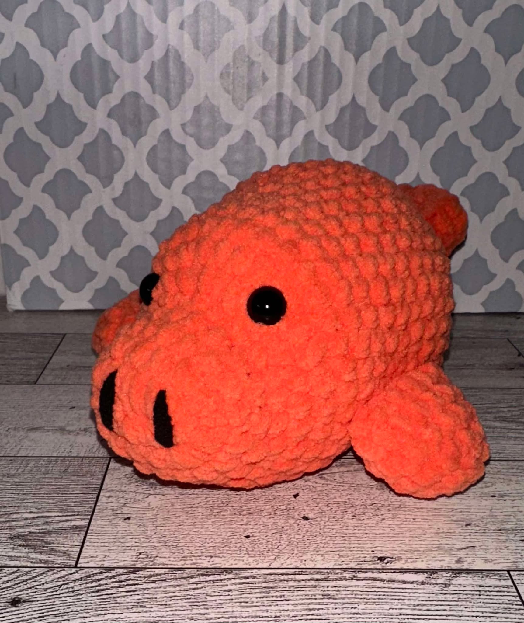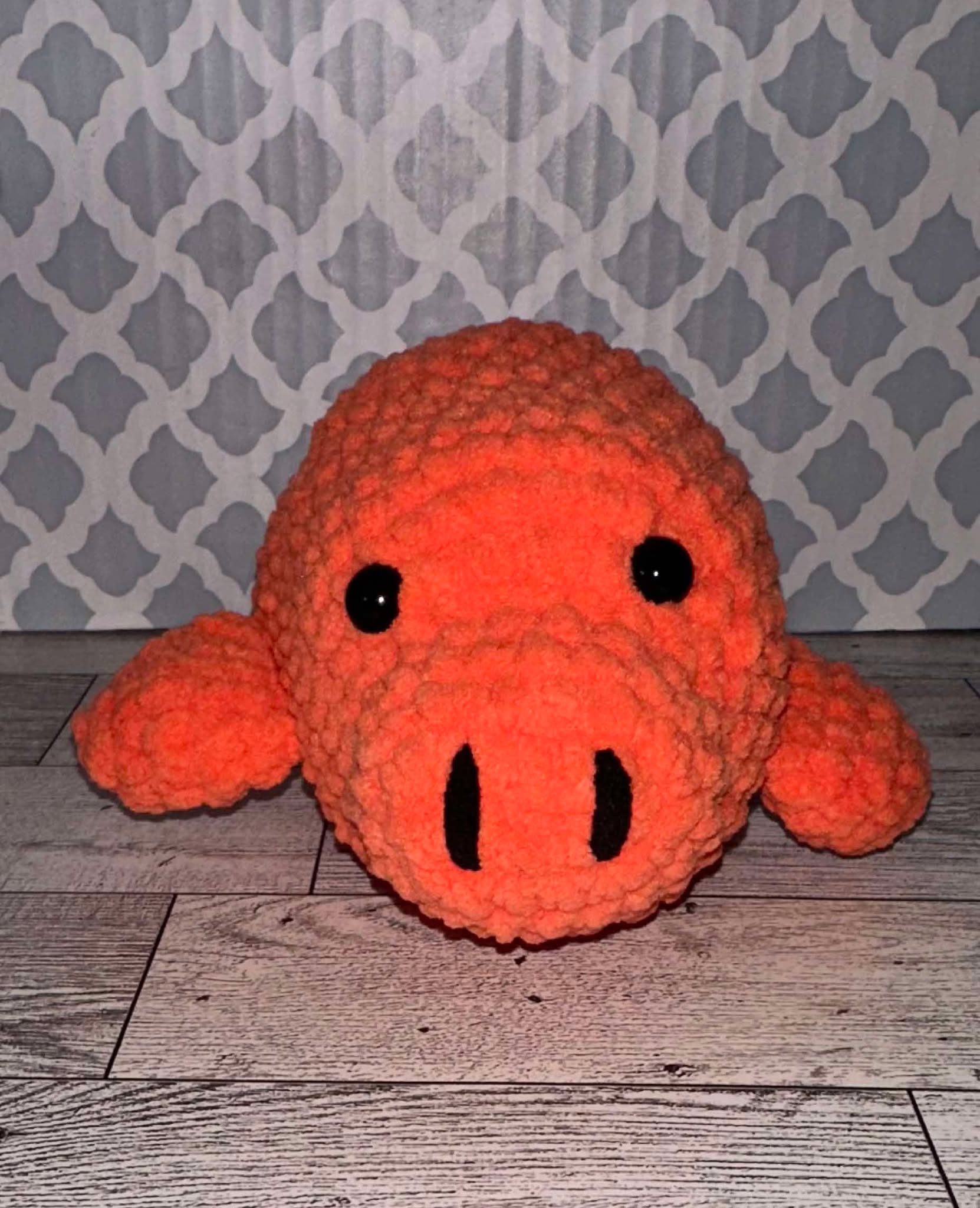 Handmade crochet manatee using 100% polyester yarn, poly-fil, and safety eyes (not suited for children under 3 due to potential choking hazard).