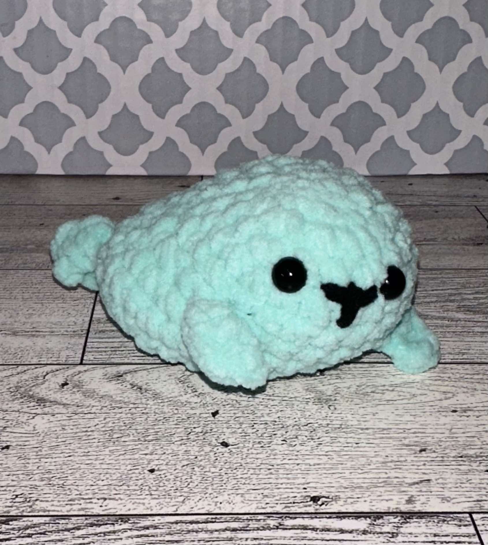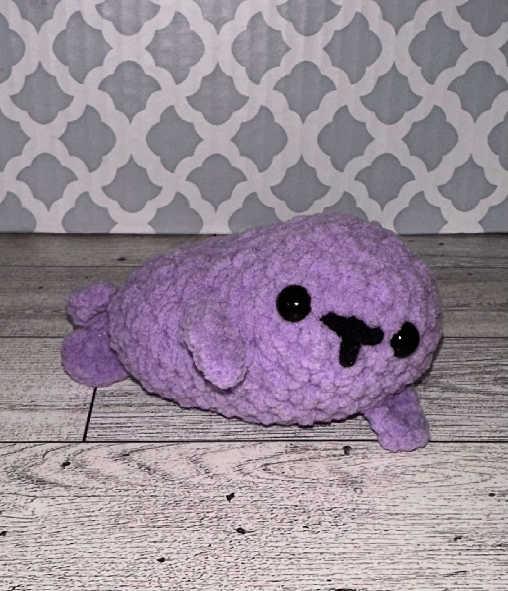 Handmade crochet seal using 100% polyester yarn, poly-fil, and safety eyes (not suited for children under 3 due to potential choking hazard).