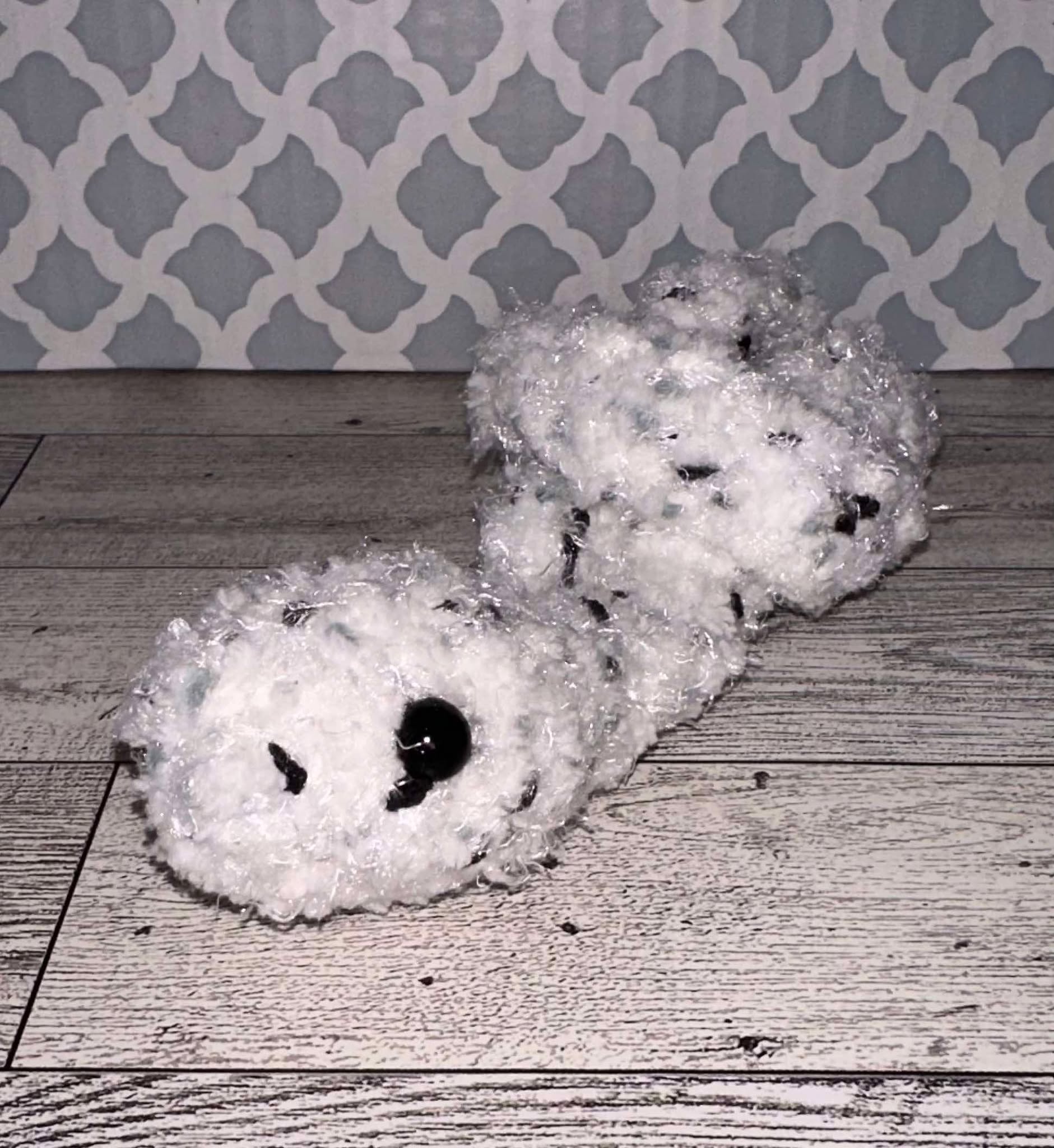 Handmade crochet snake using 100% polyester yarn, poly-fil, and safety eyes (not suited for children under 3 due to potential choking hazard).