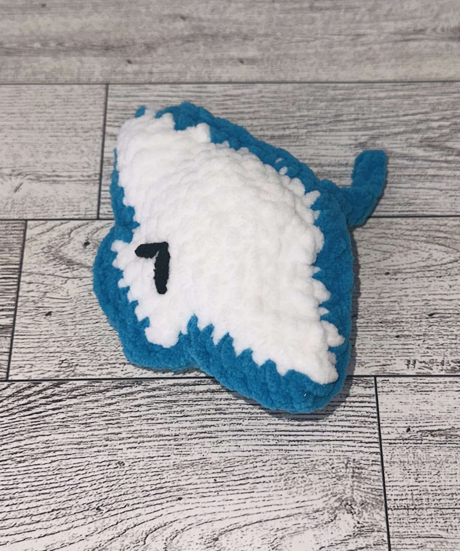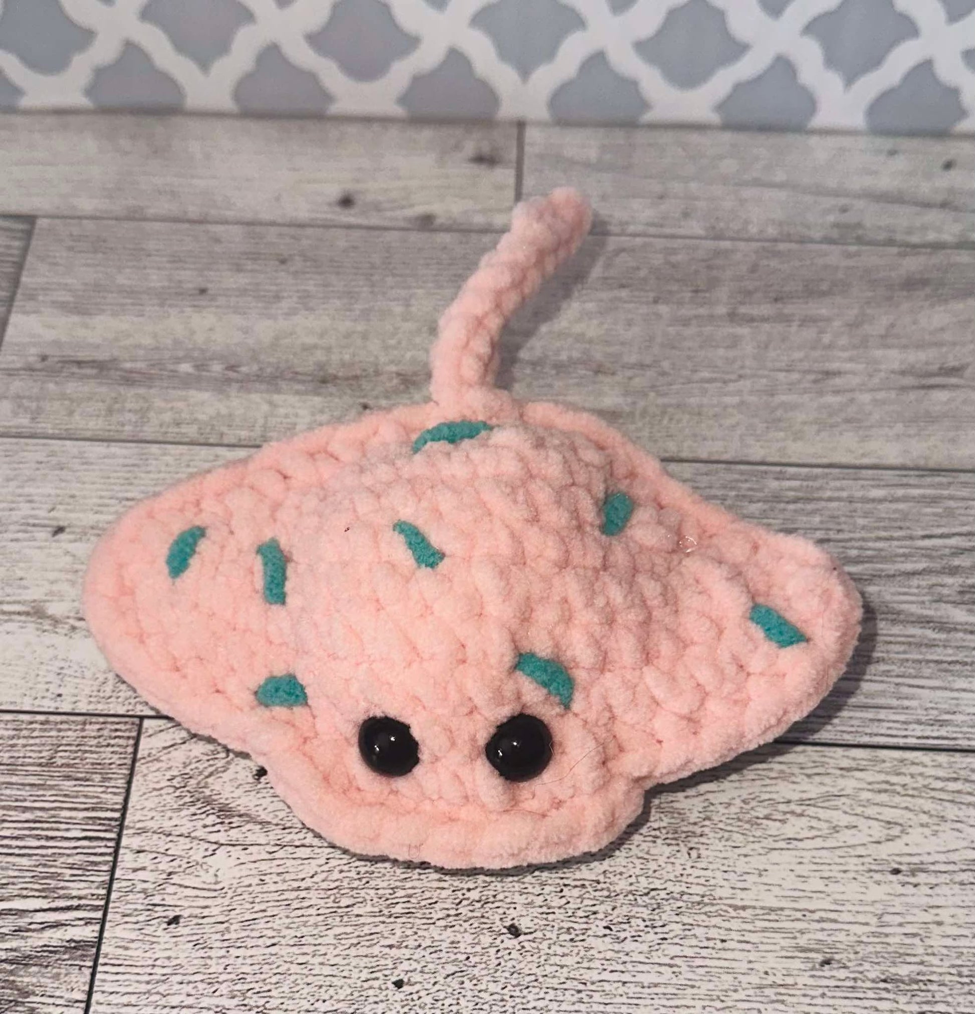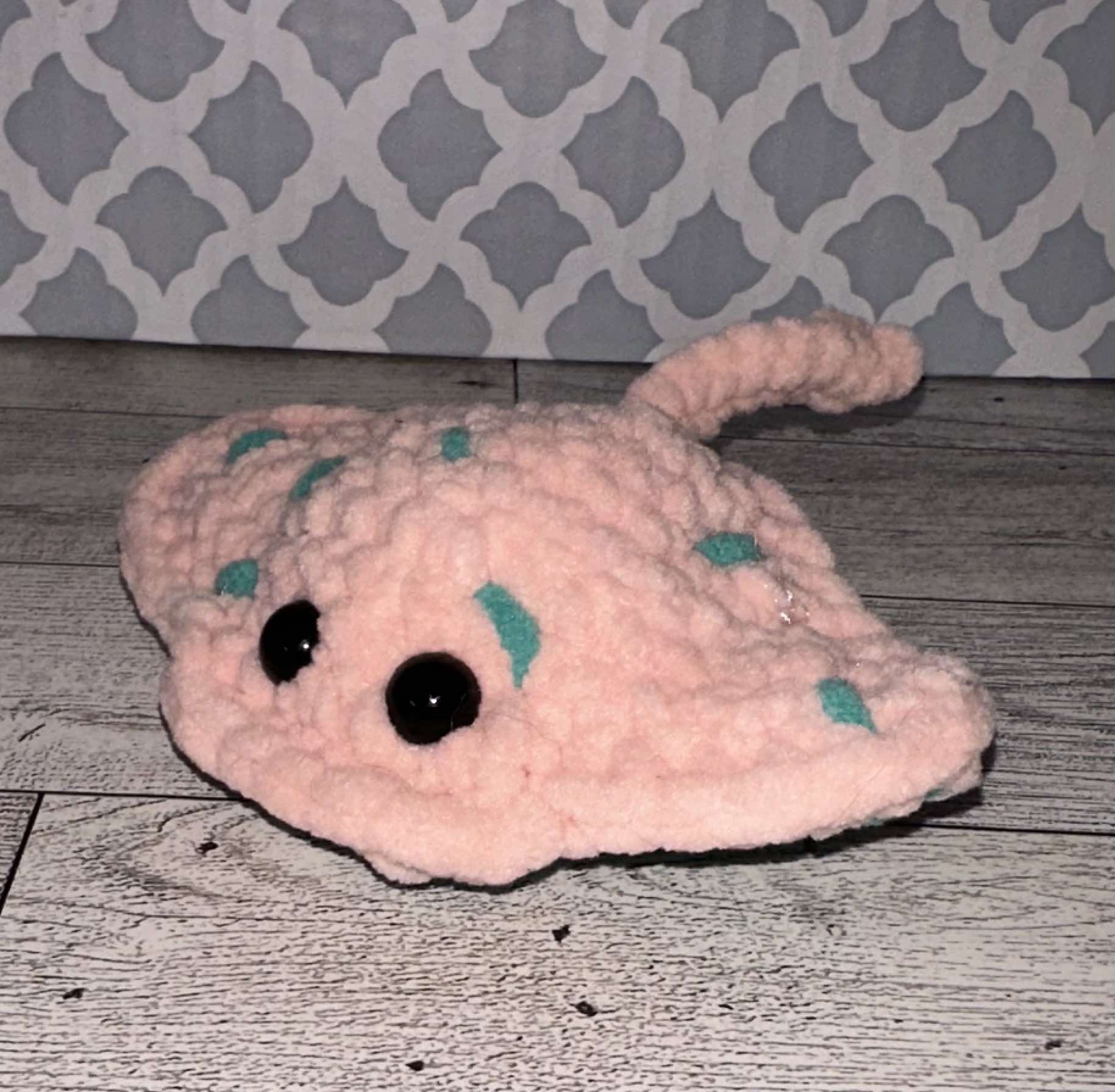 Handmade crochet sting ray using 100% polyester yarn, poly-fil, and safety eyes (not suited for children under 3 due to potential choking hazard).