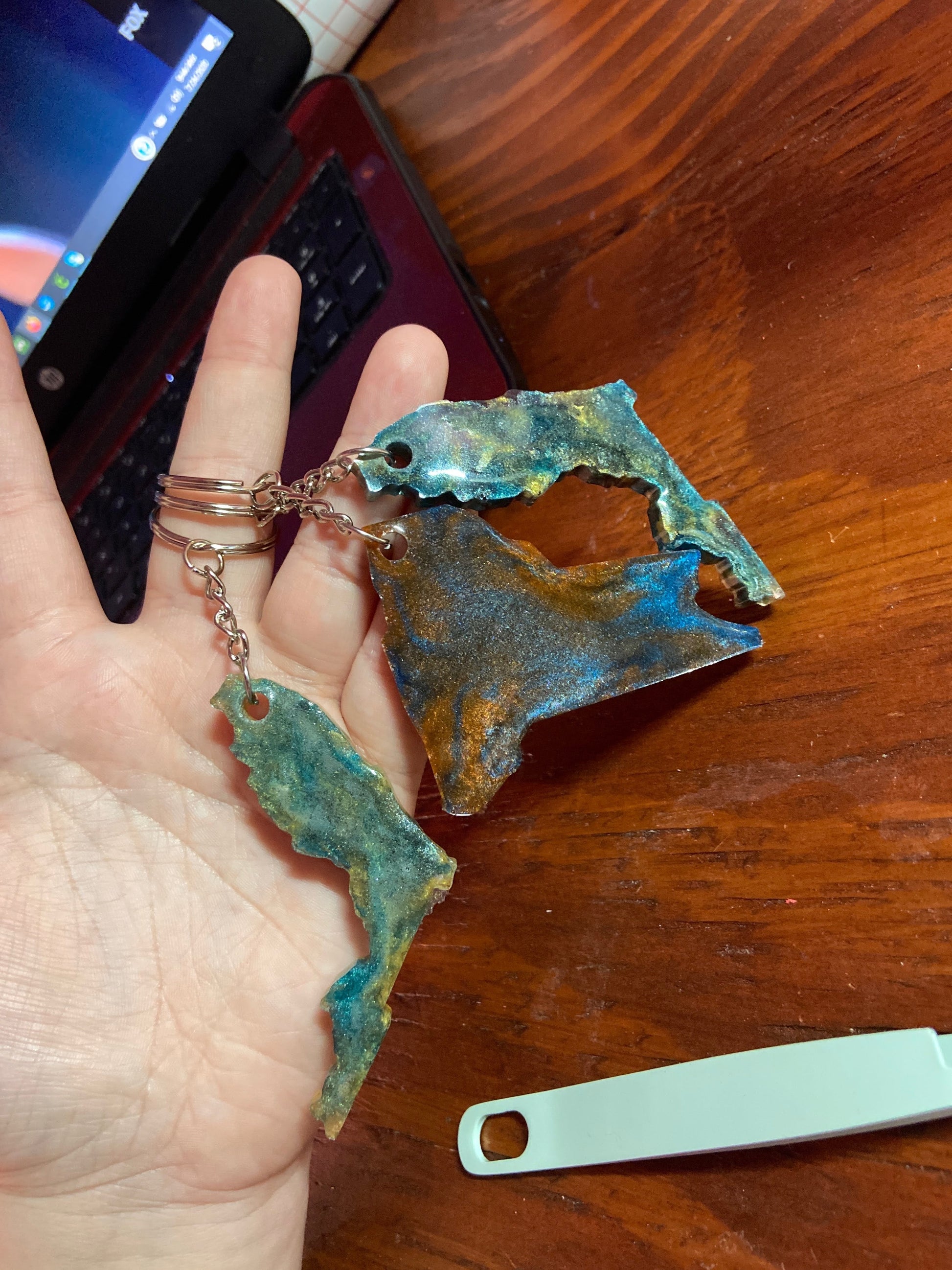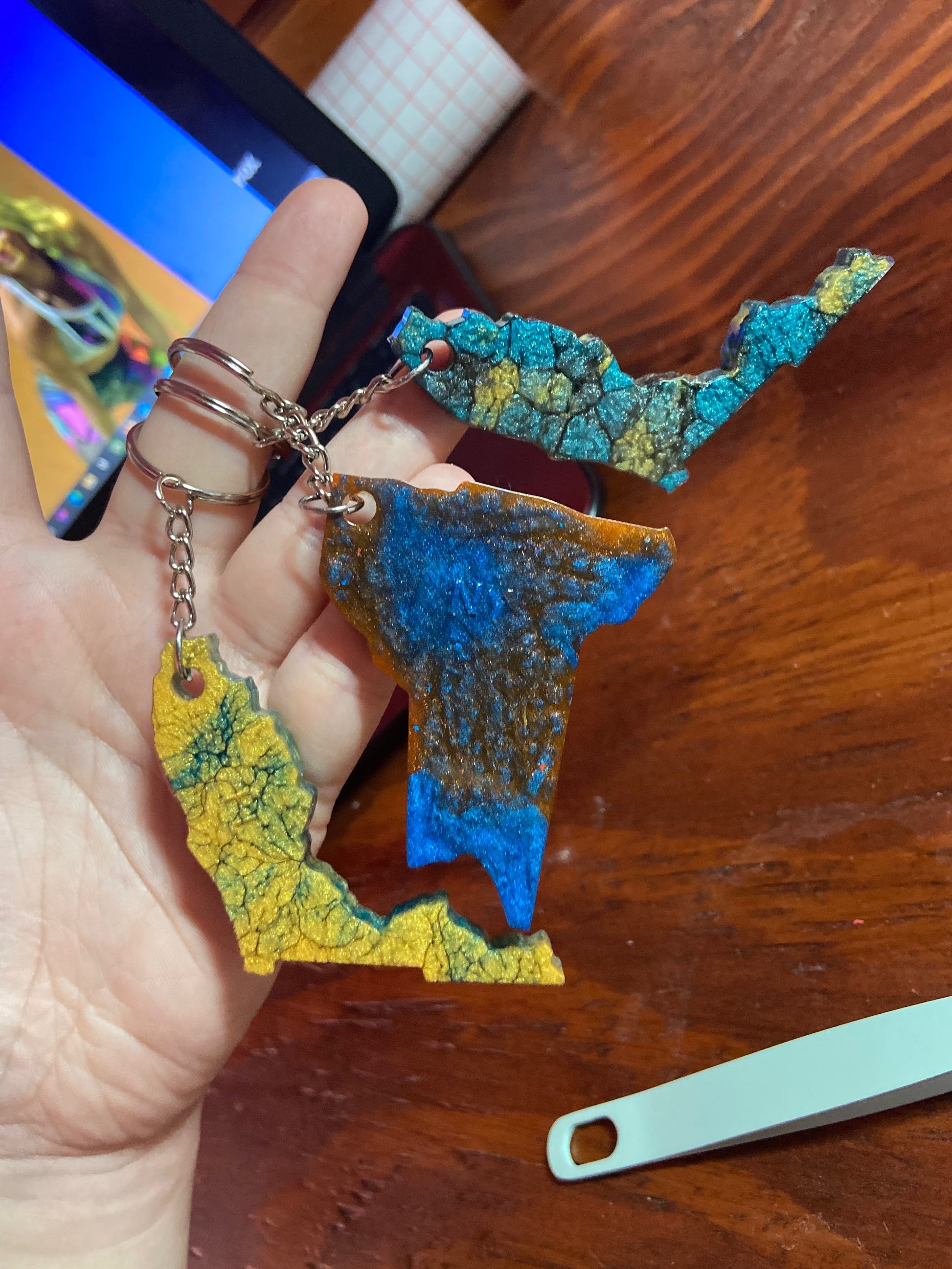 Custom State Keychains made with epoxy mixed with the colors of your choice!