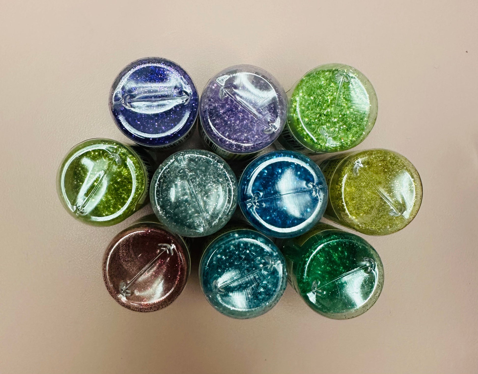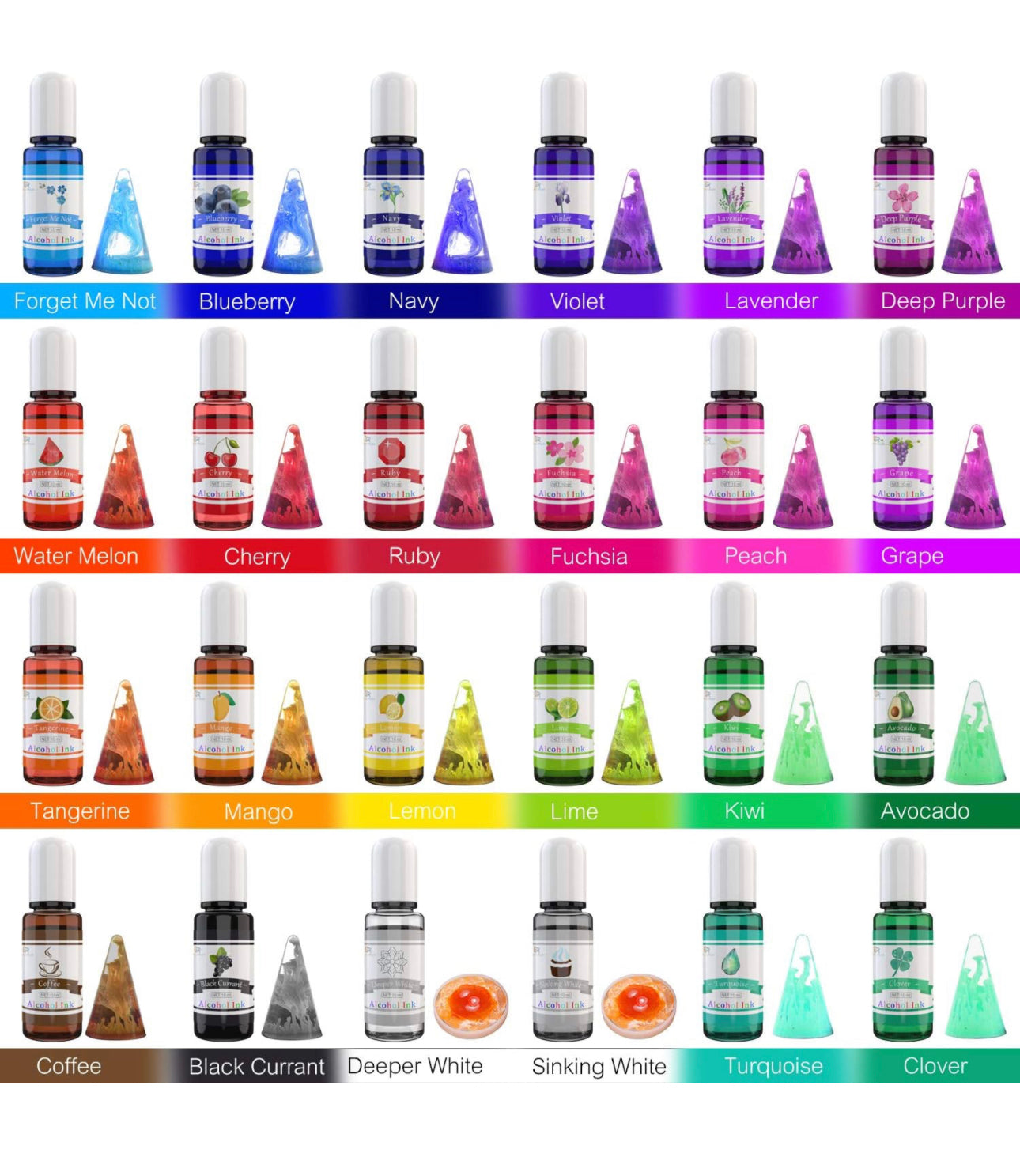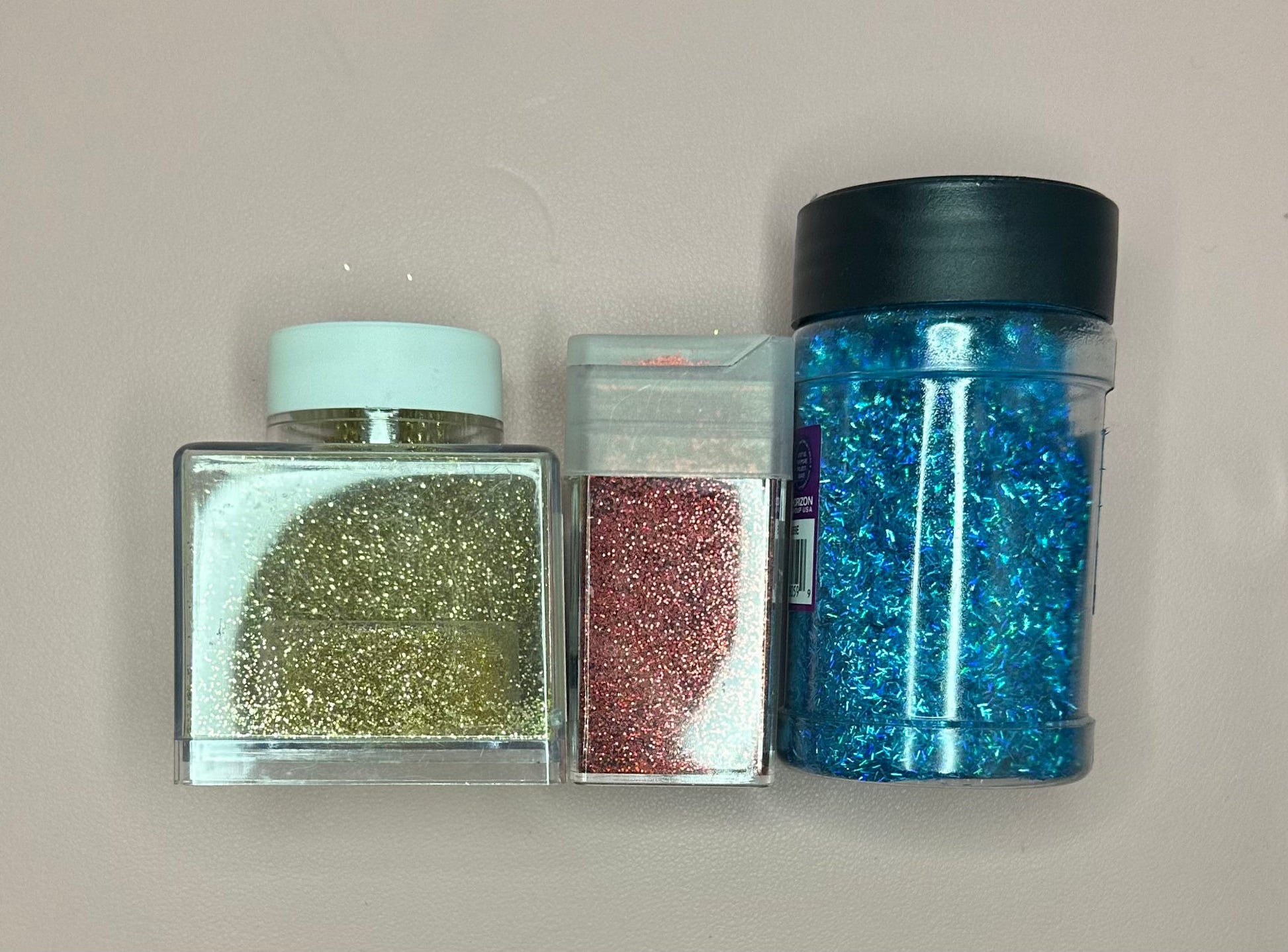 These colors can be alcohol ink, mica pigment (as shown), glitter, or a mix of them.