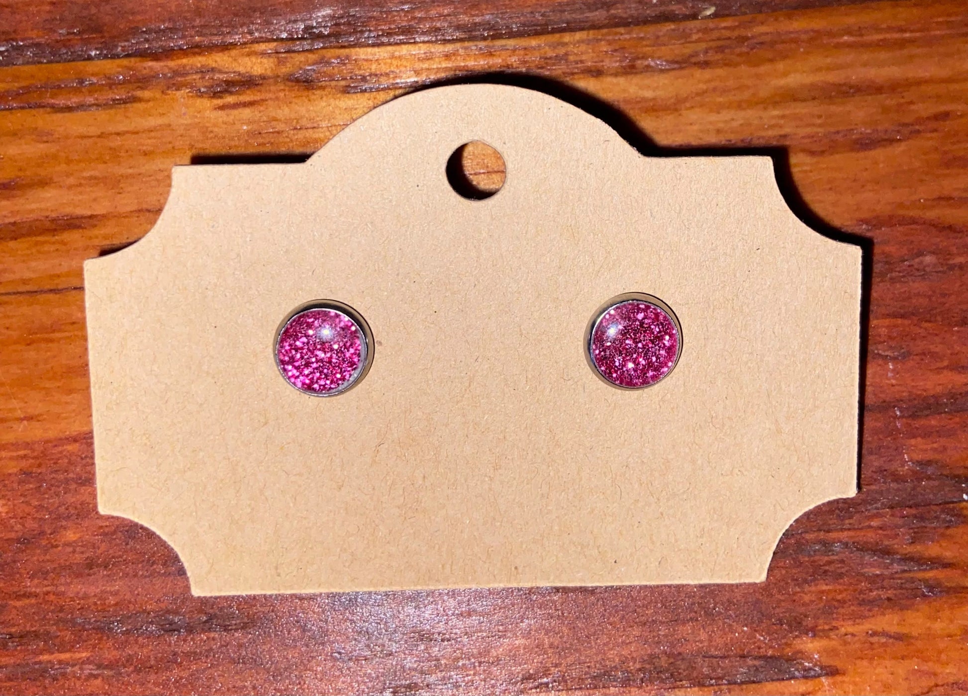 These are made with faux leather and hypoallergenic studs sealed with resin overtop.