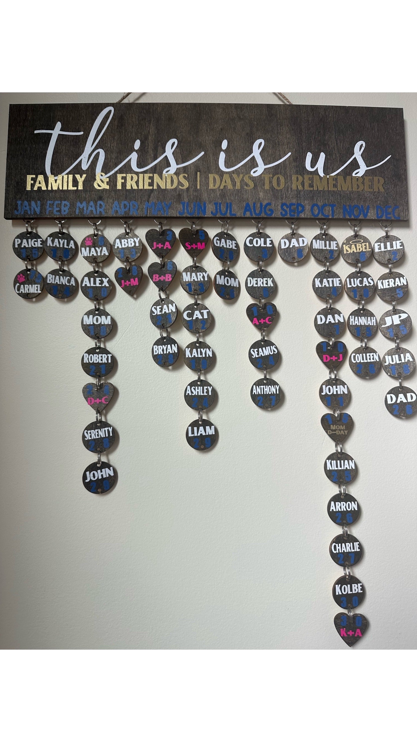 Our personalized family birthday calendar is a great way of keeping track of your family and friends' birthdays and other special dates and occasions. From now on, you will never miss any birthday or occasion with our uniquely customized birthday tracking board.