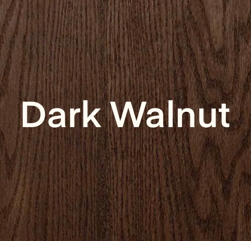 The design shown is in Dark Walnut with wood burned pieces. Color font is white, gold and royal blue.