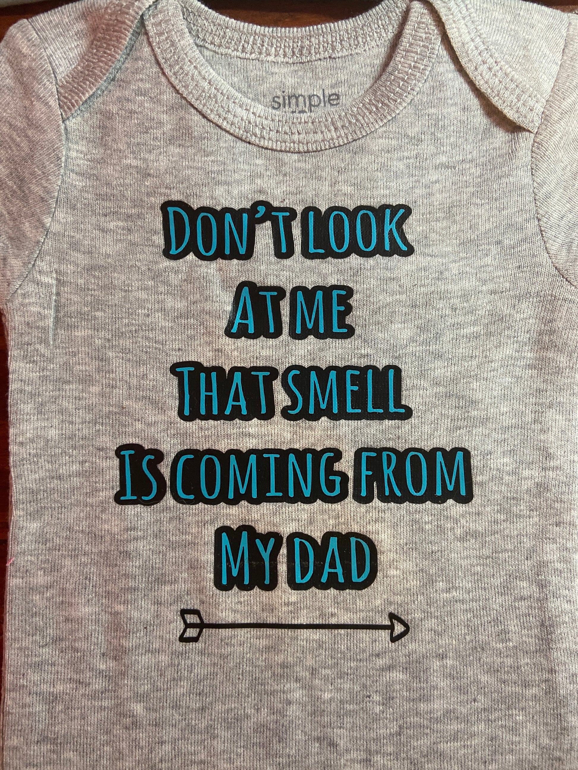A shirt that everyone will get a laugh at! Baby blaming dad for the smell that everyone assumes is coming from them!