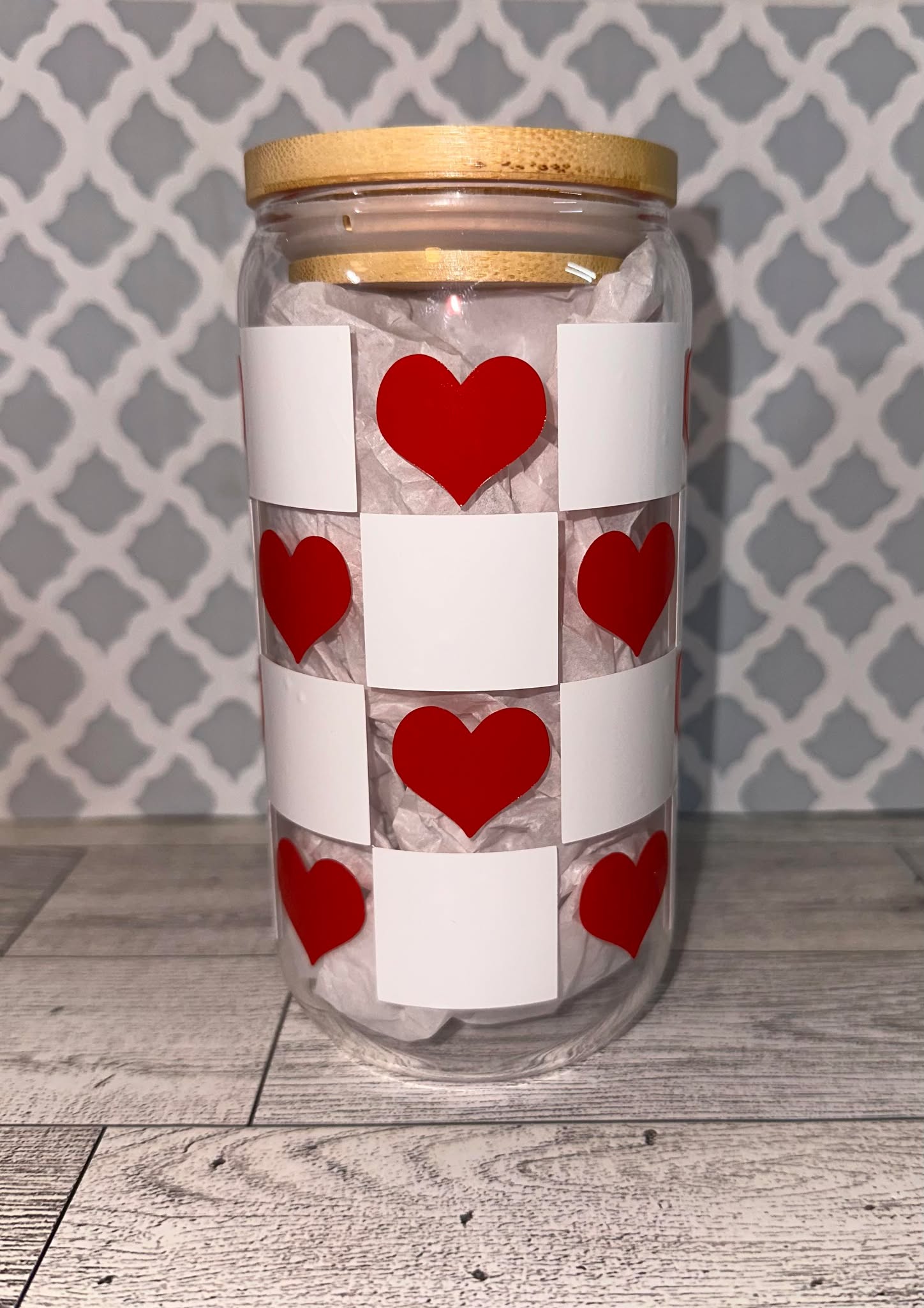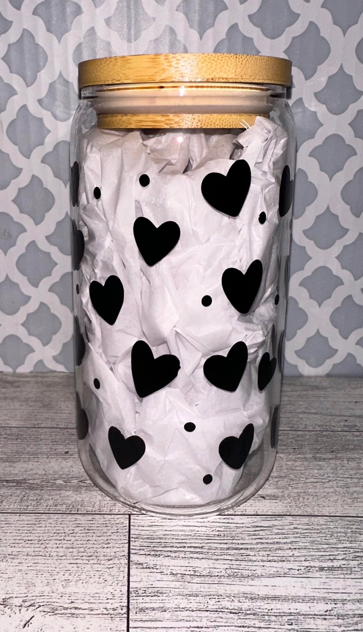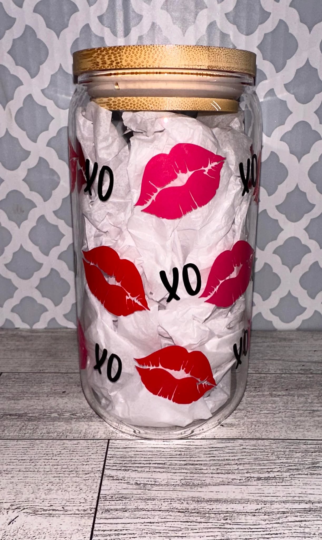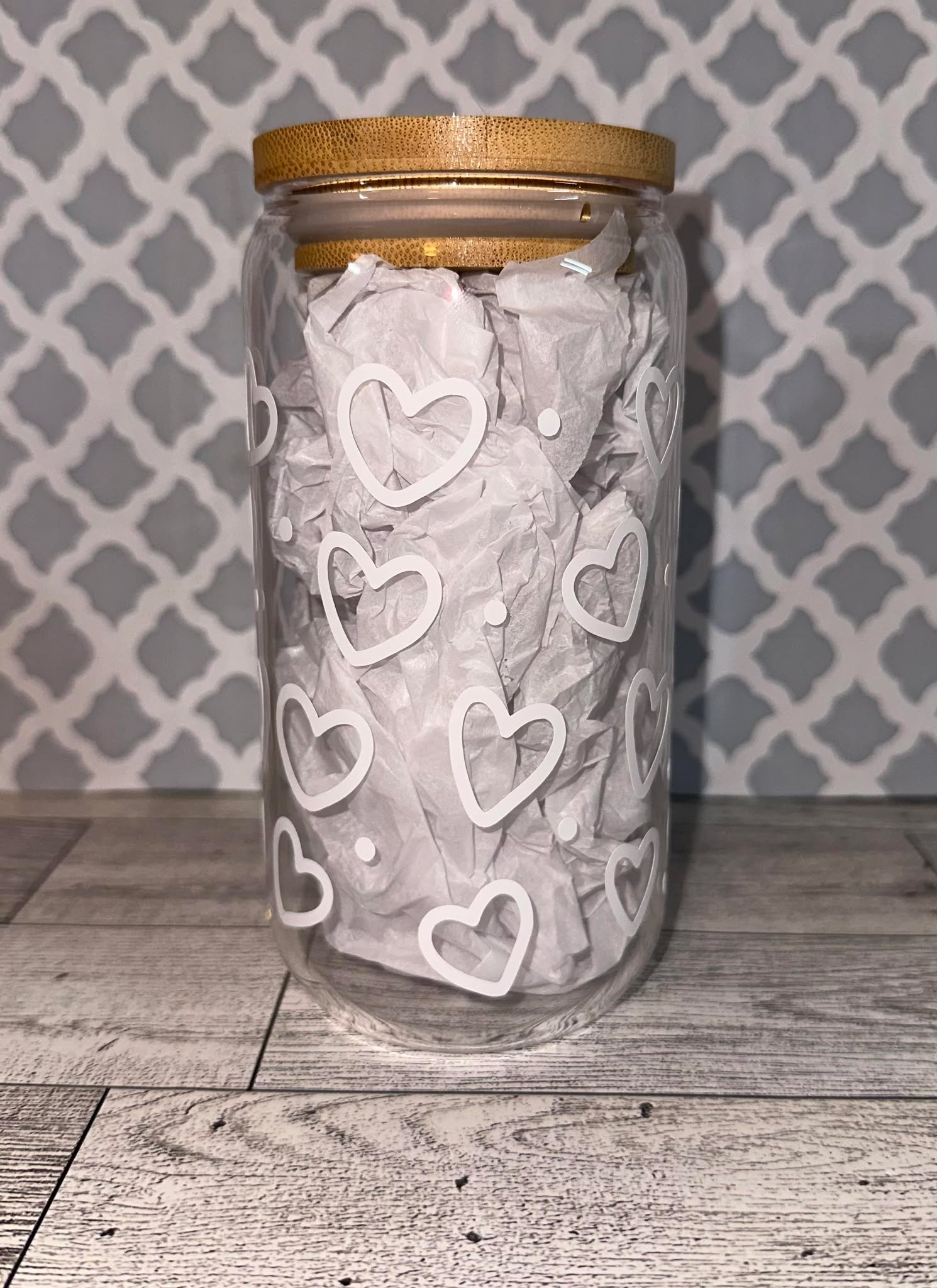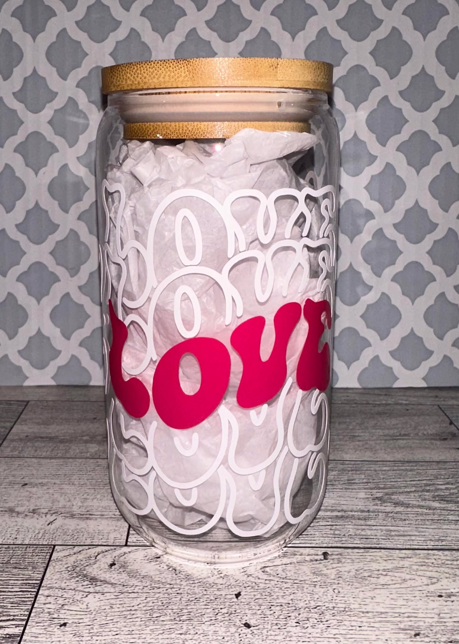 These are 16 ounce glasses made with permanent vinyl and they come with a bamboo lid and a clear glass straw.